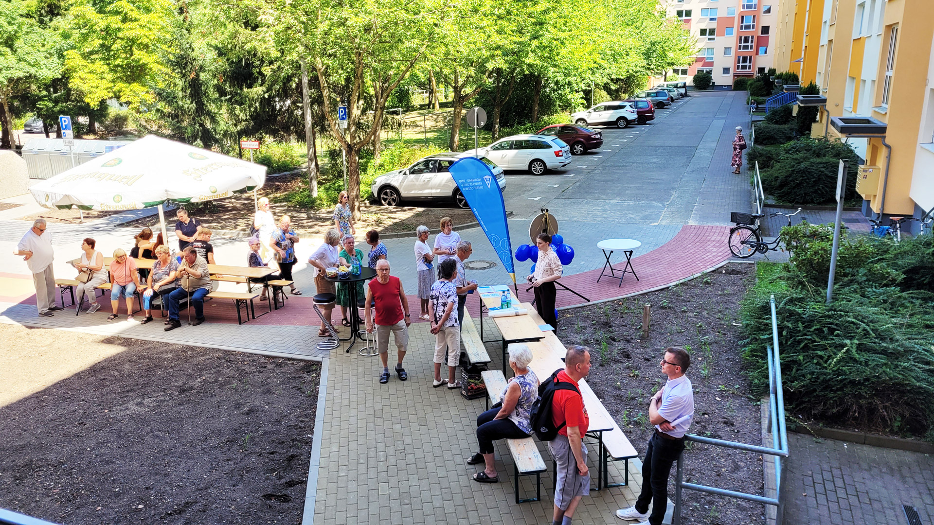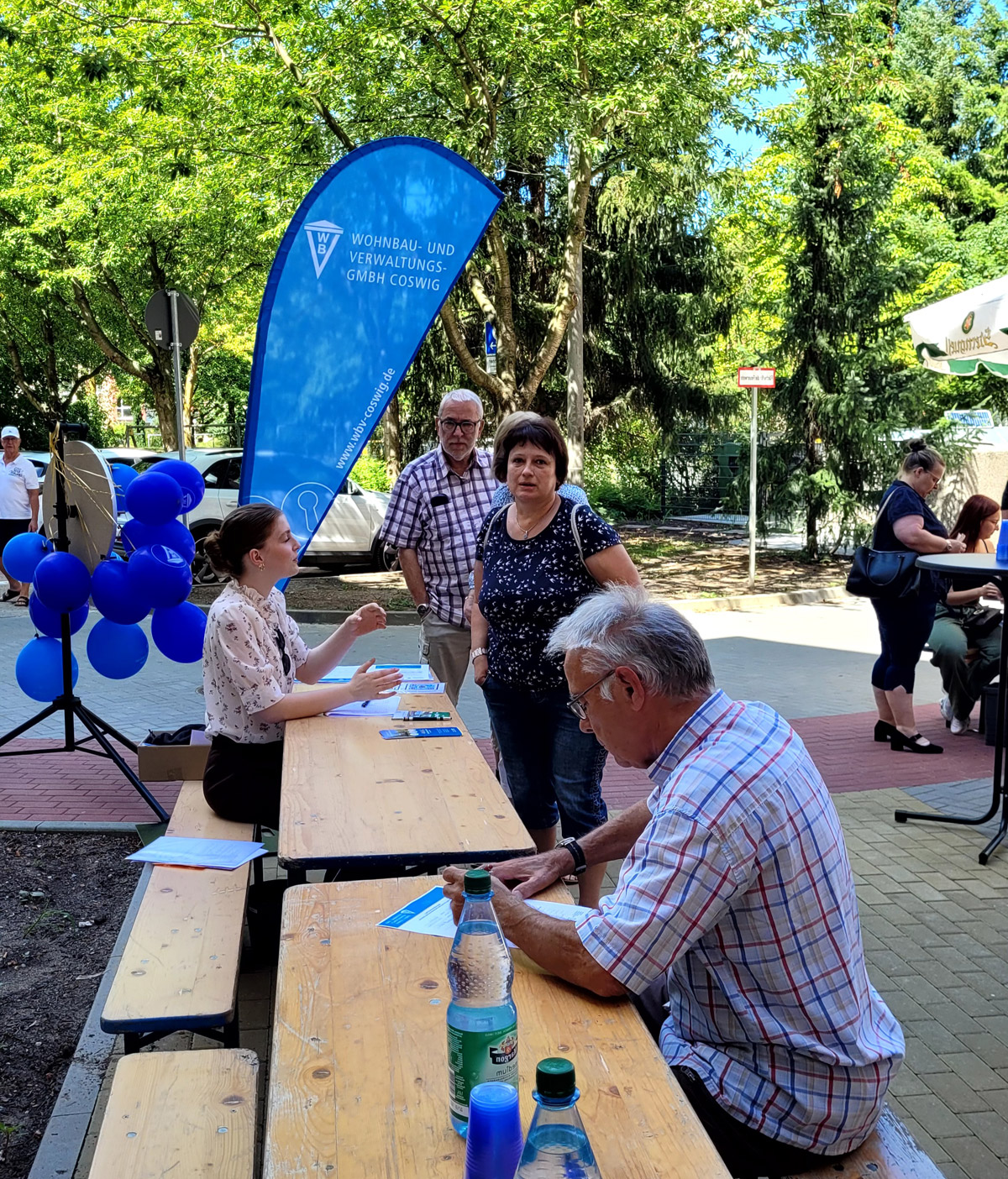 Und was sollen wir sagen: Das Interesse war wirklich groß und der Nachmittag rundum gelungen! Mehr als 100 Familien mit wahrscheinlich etwa 250 Gästen besuchten uns bei hochsommerlichen Temperaturen im Wohngebiet Dresdner Straße. Neugierige fanden sich bereits vorm Startschuss um 14 Uhr ein. Geöffnet waren – neben der gemütlich eingerichteten 2-Raum-Musterwohnung im EG – eine 2-Raum- und 4-Raum-Wohnung sowie 2 verschiedene 3-Raum-Wohnungen.